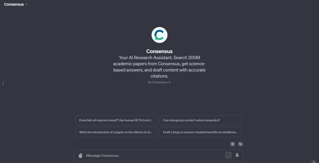 Consensusは、AI研究アシスタントとして、2億件の学術論文を検索し、科学的根拠に基づき、正確な引用を含む回答をしてくれるGPTです。
