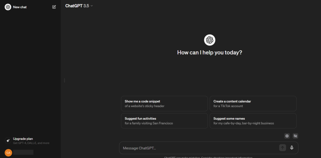 この画面がChatGPTの利用画面ですので、このままChatGPTを利用できます。